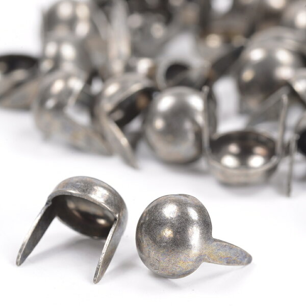 【ラウンド型 スタッズ 2爪 6mm [ アンティークニッケル / 50個セット ]】レザークラフトなどに使用できるラウンド型のスタッズ 6mm。