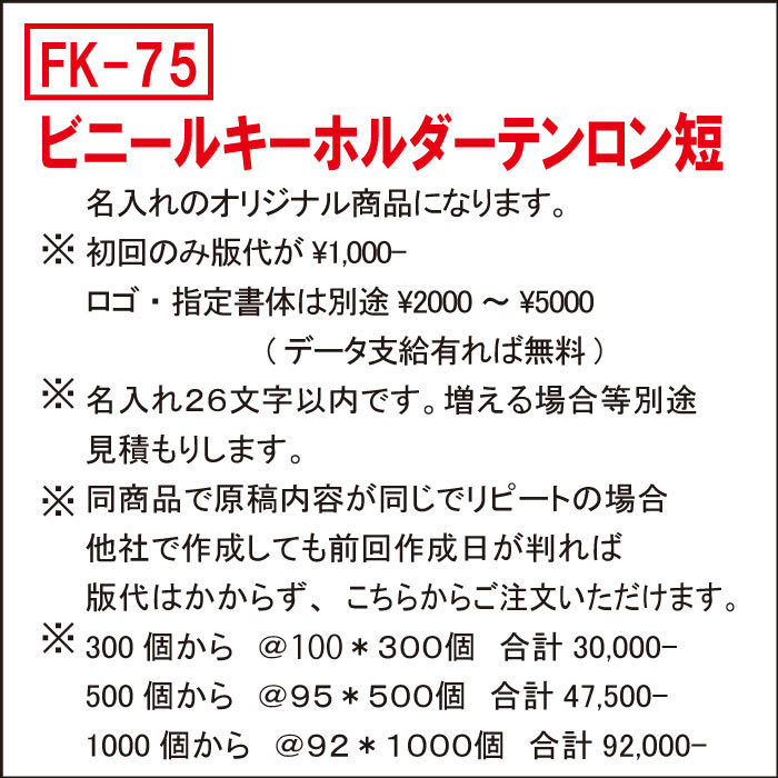 【初回限定】FK-75 ビニールベルト型キーホルダー 文字の消えないテンロン長 500個 1個@92